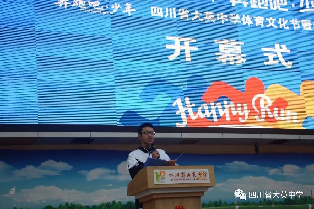 隨后是高一學生代表發(fā)言和裁判員代表宣誓。他們都表示,將以良好的狀態(tài)和專業(yè)的精神參與本次體育文化節(jié)。最后,李隆全校長宣布,2021年“奔跑吧·少年”四川省大英中學體育文化節(jié)暨綜合運動會開幕。
