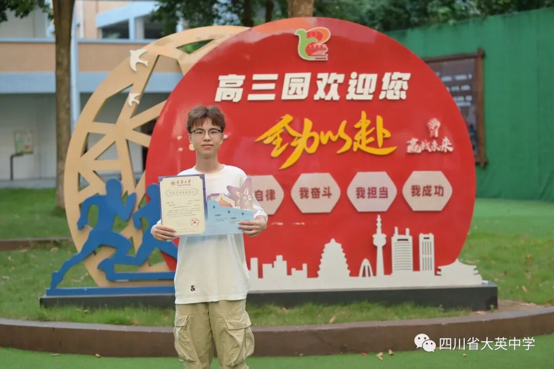 回望高中三年,“厚德懿行”讓我明得在學(xué)習(xí)之余要謹(jǐn)遵教誨,堅守初心,修養(yǎng)身心,淡泊明志,有志以成學(xué);“博文達(dá)理”讓我了解與書海之中要積跬步而至千里,積小流而成江海,寧靜致遠(yuǎn),有學(xué)以廣才。大英中學(xué)的校訓(xùn)始終銘刻在我腦海中,時時回響。萬里之行,始于足下;三載年華,揮鞭啟程。三年里,學(xué)校多次開展各種實踐活動,將課本帶出校園:我們在五四絢爛的燈光下閃爍青春的姿態(tài),成為時代的追夢人;我們在烈士陵園感受歷史的厚重與深沉,成為歷史的見證者;我們在夏令營沁潤科學(xué)的芬芳,成為未來的接班人。乘著大中長風(fēng),扶搖直上,我用努力與奮斗支撐著學(xué)習(xí)的長征;縱然冰封黃河,雪滿太行,踔厲奮發(fā)而氣宇軒昂,篤行不怠而矢志不渝,抒發(fā)“直掛云帆濟(jì)滄?!钡膲阎竞狼?。漫漫學(xué)途、征途可謂道阻且長,我也曾墜入低谷,跌出理想的幻境,迷茫與無助充斥全身。但我知道,“逆水行舟,一篙不可放緩;滴水穿石,一滴不可棄滯”,只有不停奔走,不停吟唱,所有的艱辛才會化作五彩斑斕的詩篇。