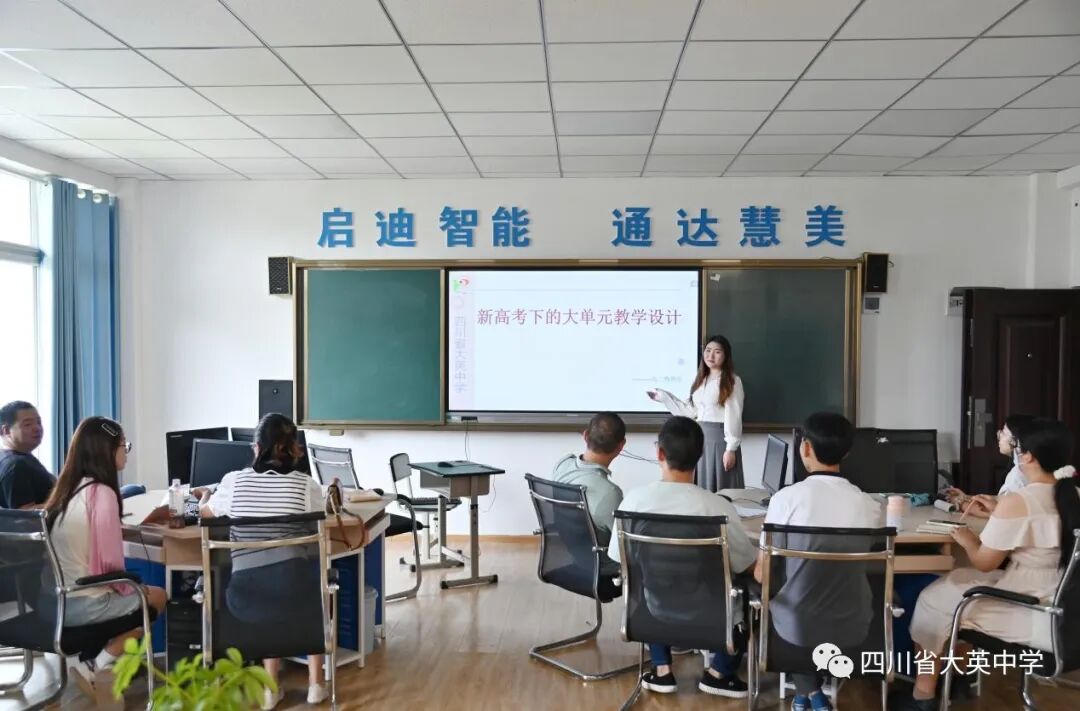 長(zhǎng)夏未盡,金秋邀約,凝心聚力。為緊跟“三新”改革的步伐,更好地促進(jìn)教師對(duì)大單元教學(xué)設(shè)計(jì)的深入理解,充分發(fā)揮教研在學(xué)校教育教學(xué)質(zhì)量提升和教師專業(yè)發(fā)展中的專業(yè)支撐作用,8月28日至30日,大英中學(xué)各學(xué)科組開展了為期三天的教研活動(dòng),為新學(xué)期助好力、開好局、起好步。