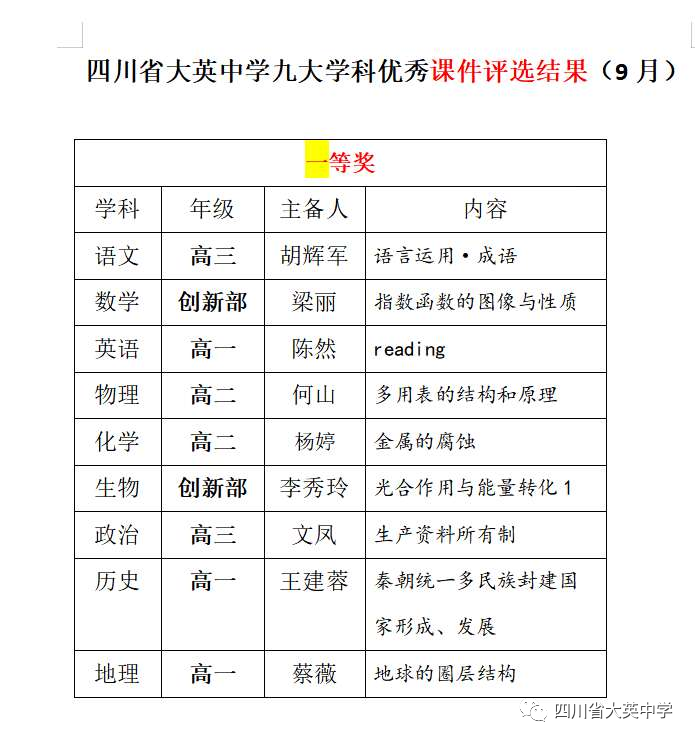 記四川省大英中學(xué)九月“優(yōu)秀課件評(píng)選”教研活動(dòng)