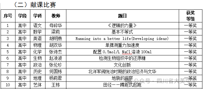 高中教學(xué)進(jìn)入“三新”時代,實施教學(xué)的內(nèi)容和理念都發(fā)生了根本變化,為更好應(yīng)對高考綜合改革和普通高中育人方式改革的要求,我校于2023年12月中旬舉辦了四川省大英中學(xué)第九屆“啟迪杯”教學(xué)能手大賽。