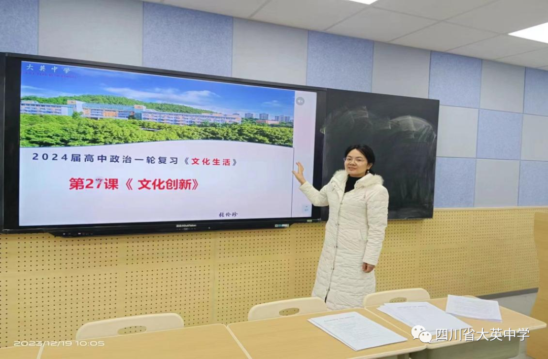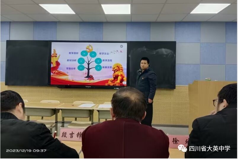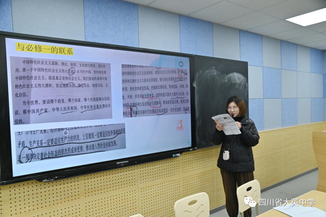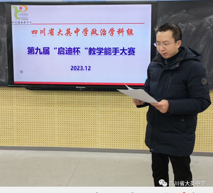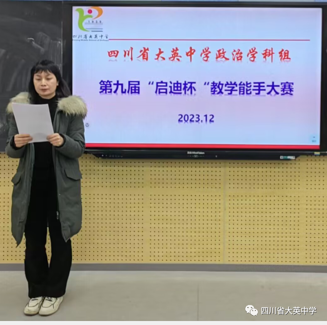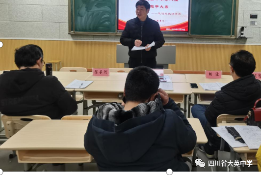 為深入推進“四個高效”“三個設(shè)計”和課程建設(shè),加強“三新”背景下課程標(biāo)準(zhǔn)的研究,提高課堂教學(xué)效率,提升教師教育教學(xué)技能、夯實教育教學(xué)基礎(chǔ),強化教師專業(yè)發(fā)展,進一步提升縣域高中學(xué)校教學(xué)質(zhì)量,四川省大英中學(xué)第九屆“啟迪杯”教學(xué)能手大賽政治學(xué)科決賽于12月19日舉行。全體政治教師及相關(guān)領(lǐng)導(dǎo)全程參與活動。活動由李莉老師主持。段吉鋒副校長、教研組長文鳳分別對比賽進行指導(dǎo)、培訓(xùn)。