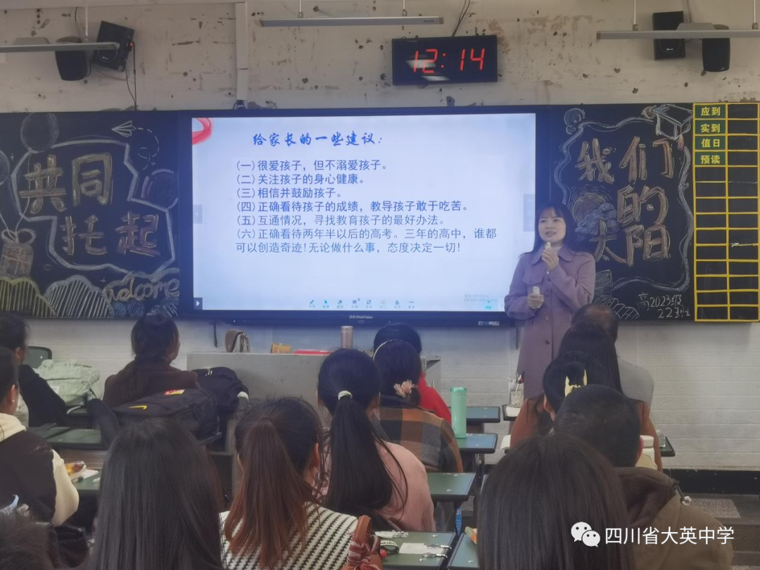蔡薇副主任向到場家長介紹了年級教學工作安排,使家長更加關注和了解孩子的在校學習情況;胡波副主任向家長介紹學生的作息時間安排、管理要求等,并希望家長多關注孩子心理健康成長及社會實踐活動等;趙明副校長以《逐夢而行,行將致遠》為主題,就新高考背景下,高考新變化,選科組合模式變化,計分方式變化,選科方向分析,選科與高校專業(yè)要求,選科與就業(yè),及選科基本原則等向各位家長作詳細介紹。他希望各位家長與孩子提前作好生涯規(guī)劃,未雨綢繆,謀定而后動。