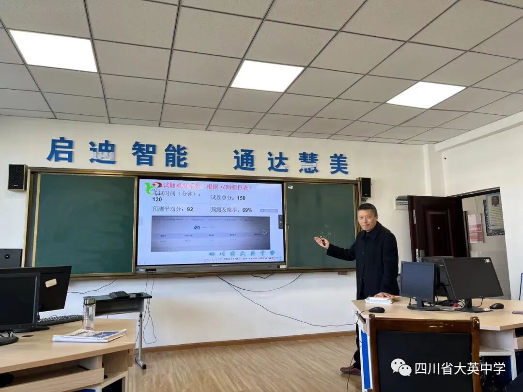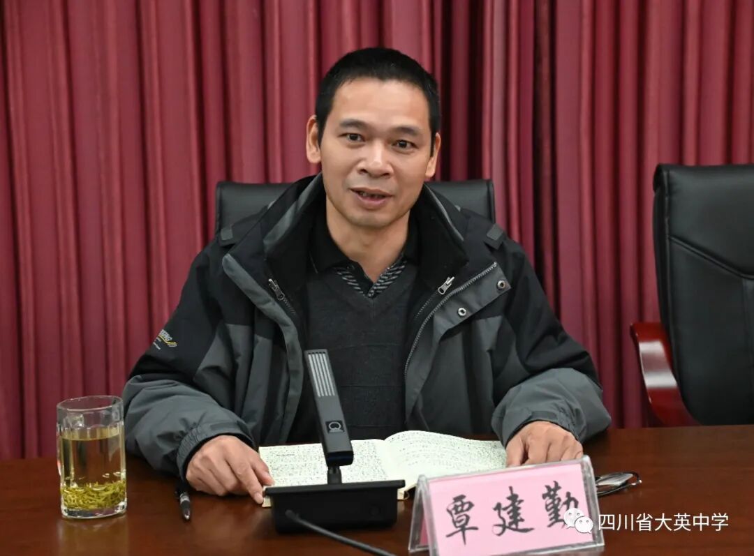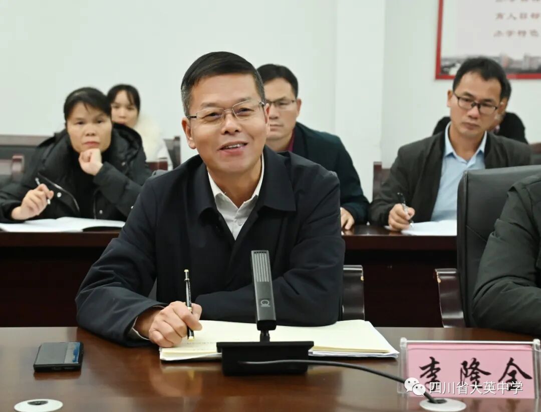 覃建勤副校長代表來賓講話,他感謝大英中學(xué)提供寶貴的學(xué)習(xí)交流機會,強調(diào)了此次活動的目的意義,希望來賓四中教師代表主動深入課堂、積極參與教研,與大中教學(xué)管理團隊深度交流,不負千里遠行的初衷。