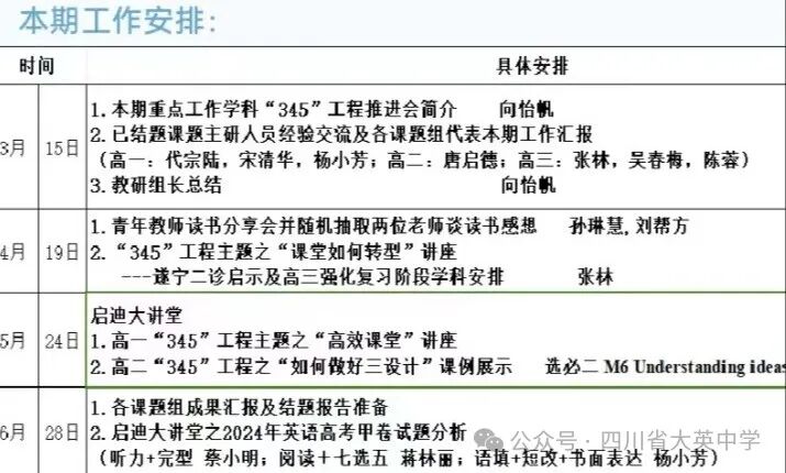 春暄桃李,共赴韶華。3月15日,四川省大英中學(xué)英語組在學(xué)校教科處組織下召開了丙辰龍年的第一次集體教研活動。整個活動緊緊圍繞本學(xué)期學(xué)校的工作安排展開。