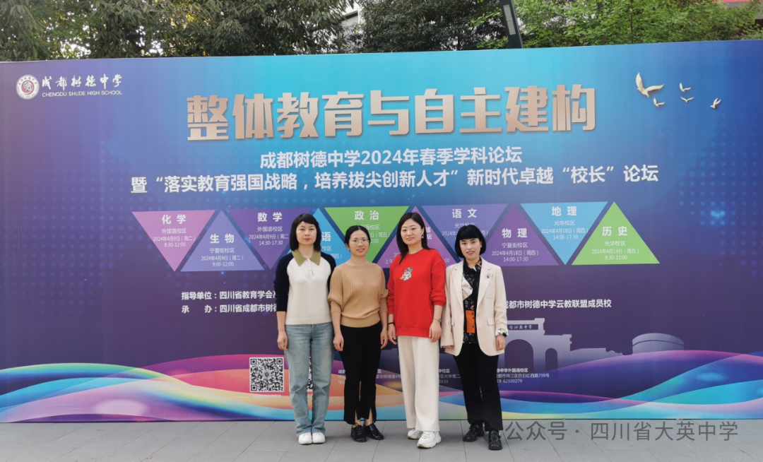 為深入學(xué)習(xí)借鑒樹德中學(xué)在教師隊伍建設(shè)、課程建設(shè)、優(yōu)秀教育教學(xué)經(jīng)驗、人才培養(yǎng)等方面的先進理念和成功經(jīng)驗,4月9日至12日,我校先后組織六大學(xué)科組的名師工作室成員赴成都樹德中學(xué)參與“以‘整體教育與自主建構(gòu) ’為主題的春季學(xué)科論壇”活動。