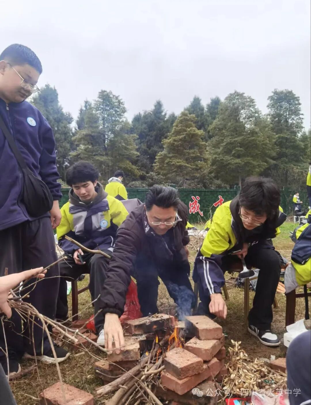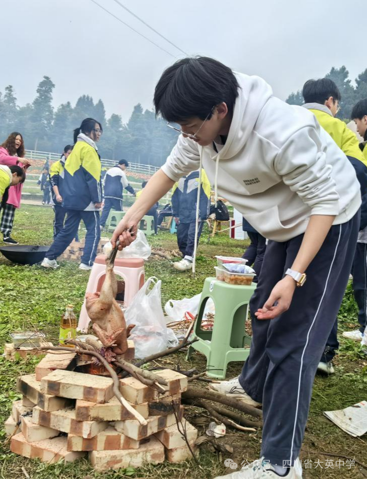 炊煙裊裊處,各班野炊區(qū)域香氣四溢。洗菜切菜的清脆聲、柴火噼啪的爆裂聲、鐵鍋翻炒的滋滋聲交織成勞動交響曲。同學們或添柴控火,或擺盤裝飾,或切菜烹飪。老師們積極指導,親自參與,師生共同烹制出一桌桌歡樂的"百家宴"。野炊活動,宛如一場合作的盛宴,同學們從活動學會了攜手共進,生活通用技能得到大幅提升,師生情誼也在煙火氣息中愈發(fā)深厚。