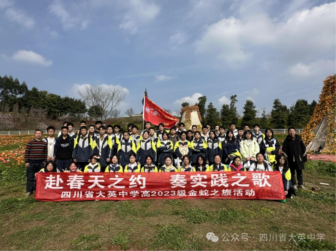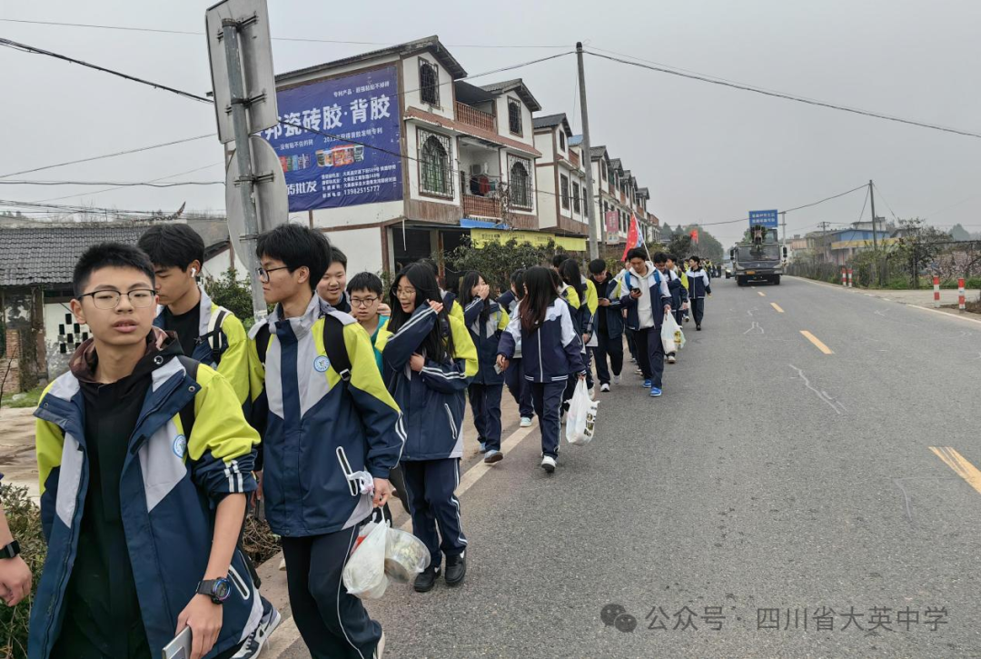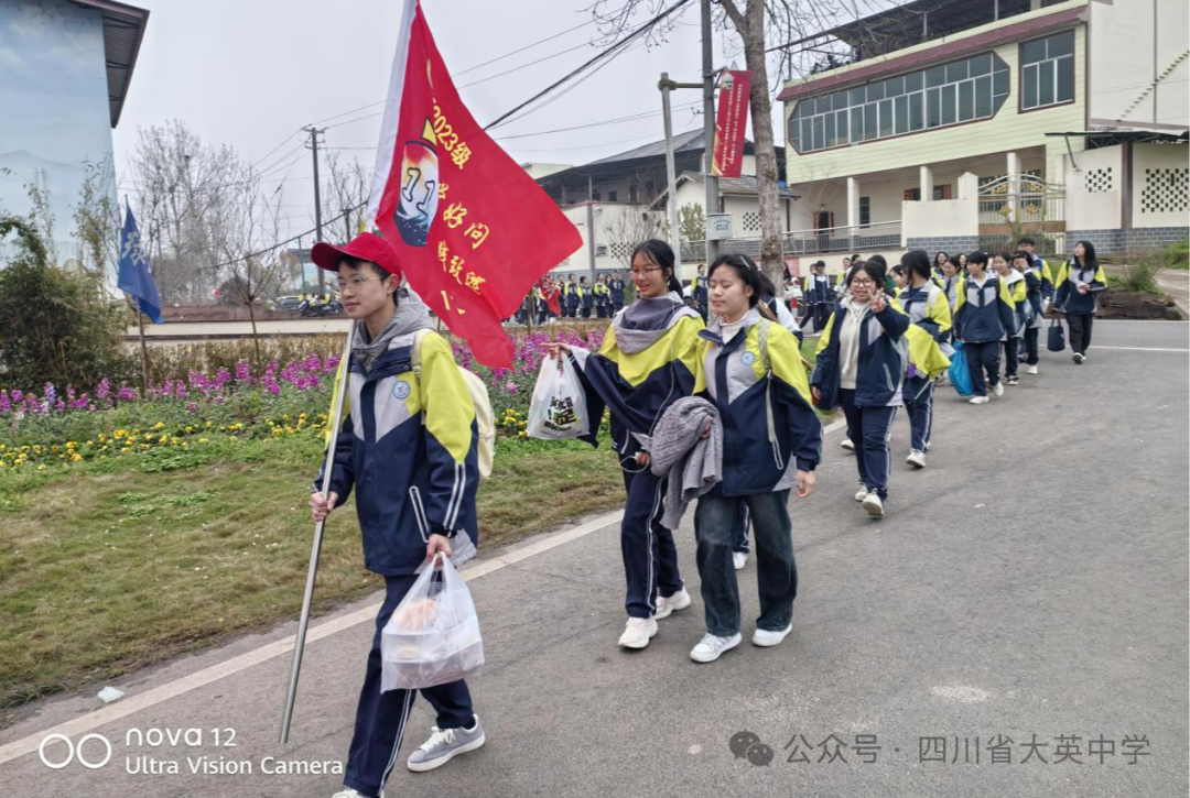 3月19日清晨,大英中學高2023級學子以班級為單位列隊,在年級管理人員和班主任有序帶領(lǐng)下向綠山微湖進發(fā),開展了一場精彩紛呈的“赴春天之約 奏實踐之歌”社會實踐之旅。春光融融,隊伍如長龍,旗幟與笑聲交織成躍動的音符。本次活動引領(lǐng)同學們投身自然懷抱,感受旖旎的春光,錘煉實踐本領(lǐng),凝聚團隊力量。