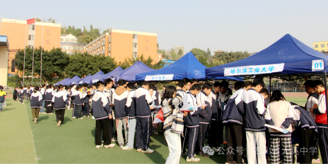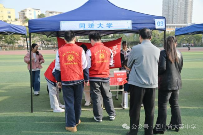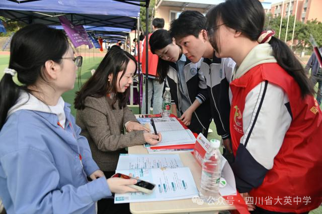 活動現(xiàn)場,足球場上19個精心布置的高校展位成為焦點。各高校精心設(shè)計宣傳資料,通過展板、手冊及互動答疑等形式,全面展示學(xué)科優(yōu)勢、特色專業(yè)及校園生活。山東大學(xué)、同濟大學(xué)等高校代表耐心解答學(xué)生疑問,東北林業(yè)大學(xué)老師更是對大英中學(xué)學(xué)子的綜合素質(zhì)贊不絕口。高三學(xué)生穿梭于展位間,認真了解心儀院校的招生信息,現(xiàn)場氣氛熱烈而有序。