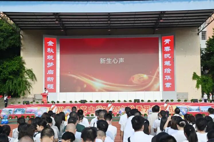 伴隨著雄壯的國歌,五星紅旗冉冉升起,全體師生肅立行注目禮,開學典禮正式拉開帷幕。