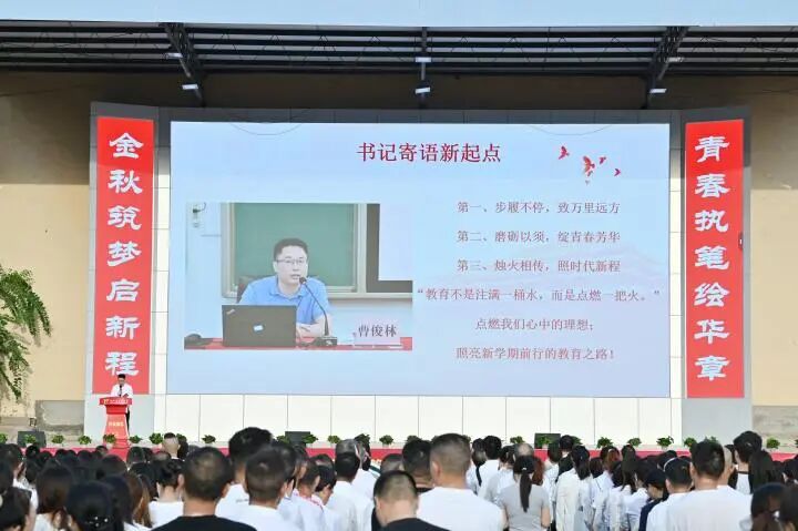 黨委書記曹俊林作新學期寄語。首先,他帶領全體師生回顧大中過去一年所取得的成績。然后,他強調(diào)未來將開展“三個一”工作,持續(xù)推進學校高質(zhì)量發(fā)展,一是落實18字策略,構建一套高質(zhì)量發(fā)展體系;二是推進“345”工程,特別是“四個高效”,探尋一條高質(zhì)量發(fā)展路徑;三是“數(shù)字賦能”發(fā)展,建設一支高水平教師隊伍。同時將加強學?;A設施建設,進一步提高辦學條件。最后,他勉勵全校師生步履不停,矢志追夢,在新征程中勇于突破、勤于實踐、敢于擔當。他的話語鏗鏘有力、意蘊深長,深深感染著現(xiàn)場的每一個人。