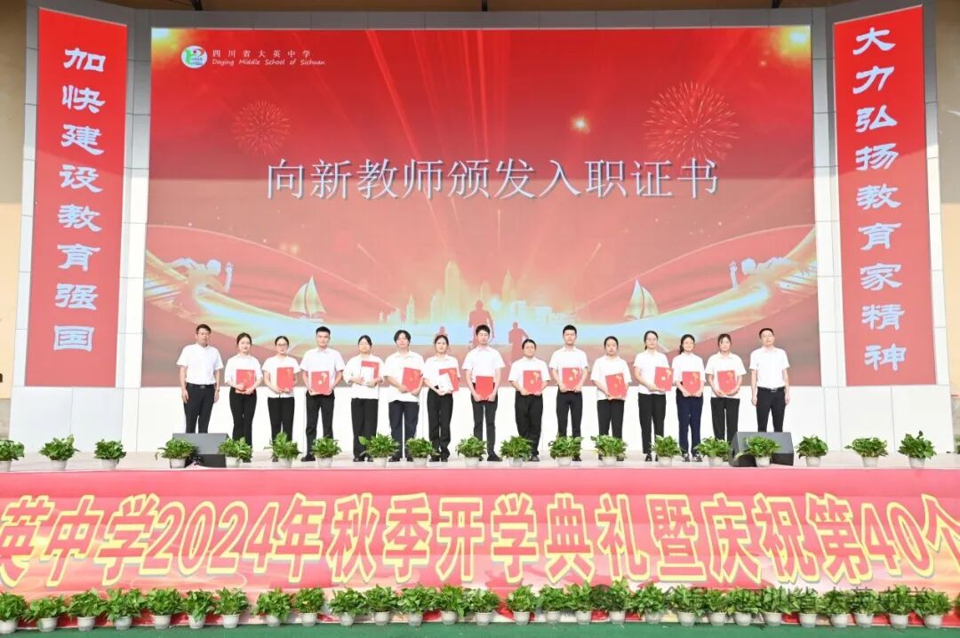 9月12日上午,四川省大英中學(xué)隆重舉行2024秋季開學(xué)典禮暨慶祝第40個教師節(jié)大會。大會以“大力弘揚(yáng)教育家精神  加快建設(shè)教育強(qiáng)國”為主題,主要議程有新生拜師儀式,新教師入職儀式,優(yōu)秀師生代表頒獎儀式。會上,學(xué)校領(lǐng)導(dǎo)和師生代表激情發(fā)言,新生代表深情朗誦,整個活動儀式莊重,情意深重。