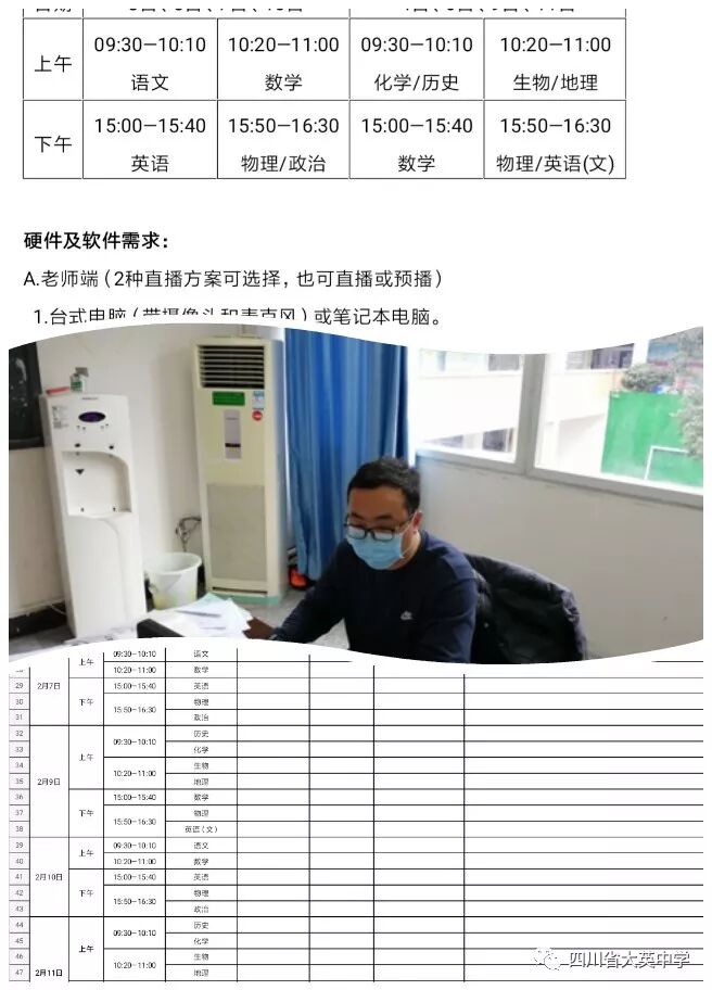 年級備課組長、骨干教師、黨員教師,每天安排三堂網(wǎng)絡(luò)直播課,并逐一檢查落實(shí)。