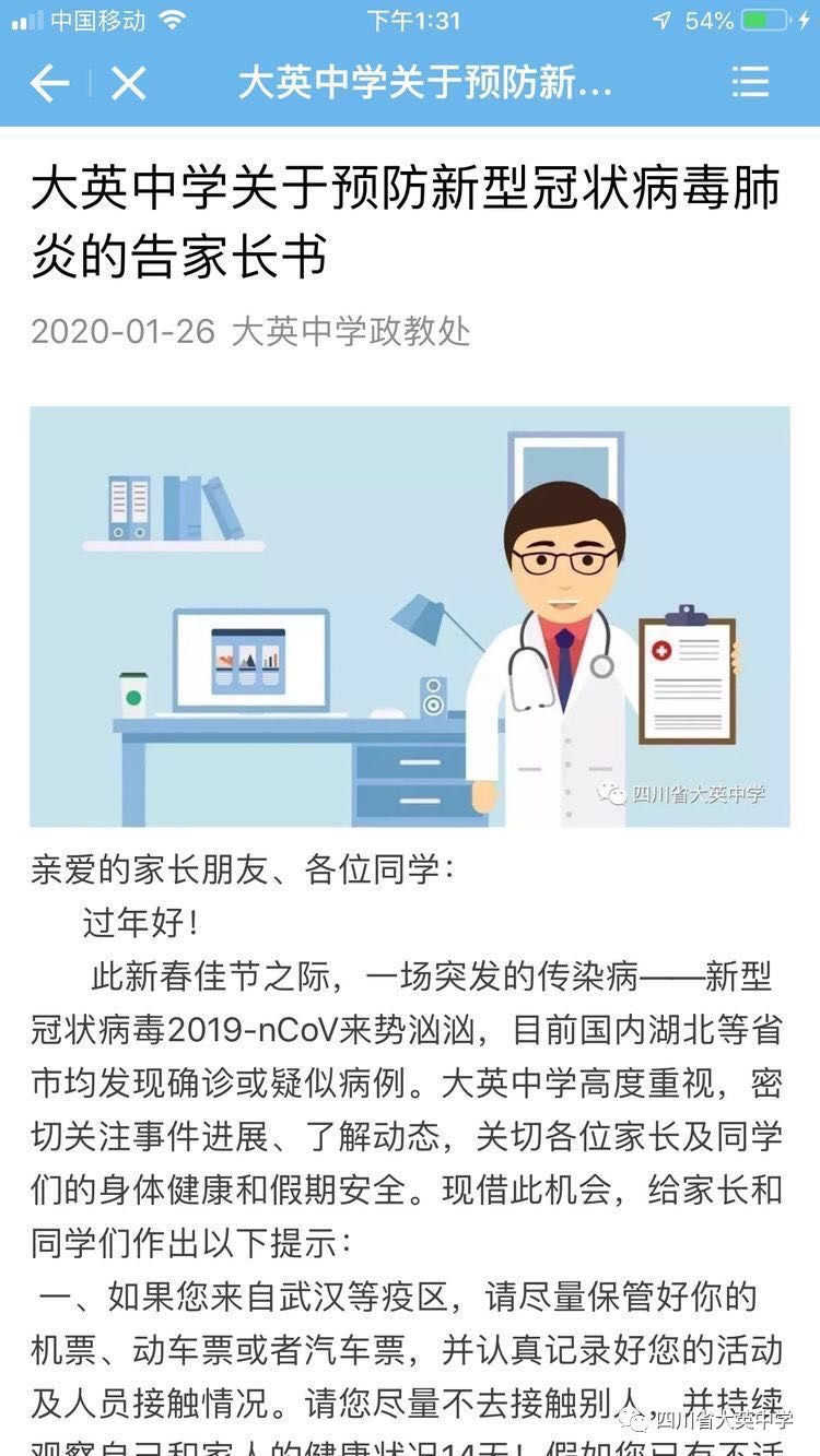 2020年悄然而至,在萬家團(tuán)聚的春節(jié)期間,一場突如其來的新型冠狀病毒肺炎疫情席卷武漢,并迅速蔓延全國。面對這場不期而遇的挑戰(zhàn),大英中學(xué)響應(yīng)政府號召,積極采取多項(xiàng)措施,做好各項(xiàng)防疫工作。