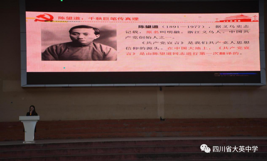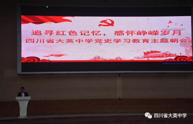 2021年4月19日上午,大英中學(xué)政教處、團委會組織召開了以“追尋紅色記憶,感懷崢嶸歲月”為主題的黨史學(xué)習(xí)教育主題朝會,全校師生五千余人參加了朝會。