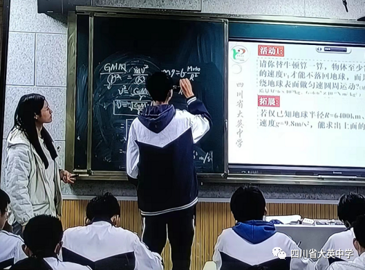 高一新教師李博的研討課《宇宙速度》通過(guò)視頻引入,以問(wèn)題和活動(dòng)為教學(xué)中心,讓學(xué)生參與討論和推導(dǎo),踐行了高效課堂理念。