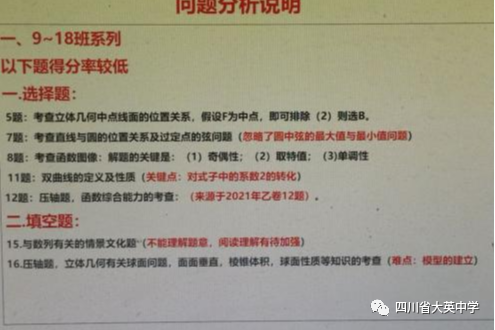 數(shù)學(xué)組本次研討主要圍繞遂寧二診,結(jié)合考點(diǎn),分析試題,突破難點(diǎn),提升備考有效性。