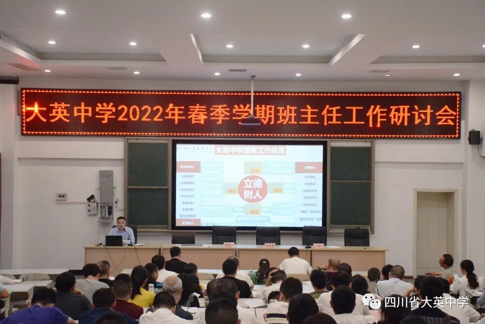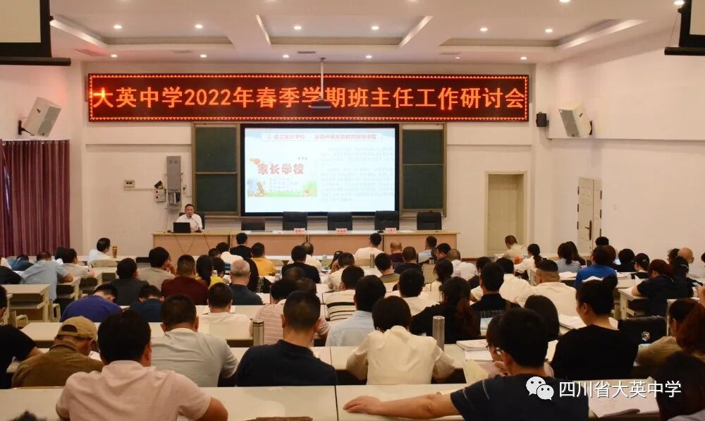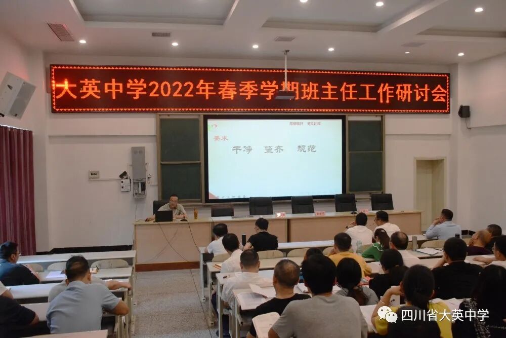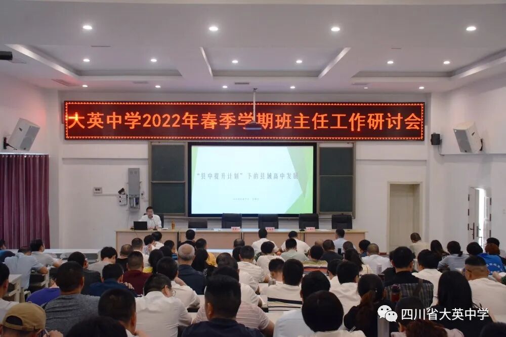 2022年3月18日下午,四川省大英中學2022年春季學期班主任研討會在慧達樓階梯教室召開。李隆全校長、劉國華副校長、郭瑩副校長及各年級主管領(lǐng)導、政教主任出席會議,初高中全體班主任參加會議。