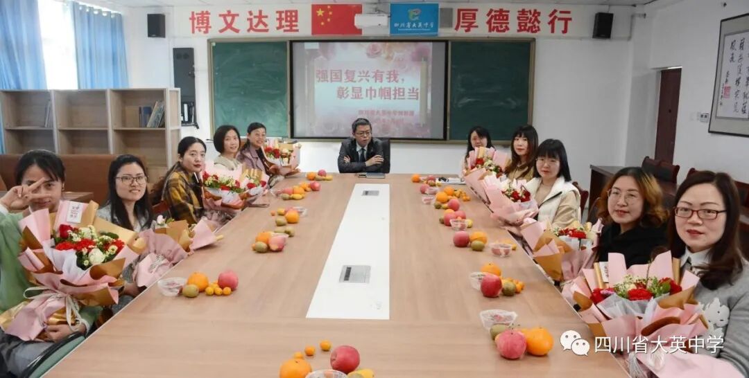 斗妍百花鬧春風(fēng),鏗鏘玫瑰別樣紅。為宣傳女教職工優(yōu)秀典型,弘揚拼搏奮進的精神,學(xué)校制作了以“凝聚巾幗力量,建設(shè)大美大英”展板,用榜樣的力量激發(fā)廣大女教職工立足崗位建功立業(yè),爭做偉大事業(yè)的建設(shè)者、文明風(fēng)尚的倡導(dǎo)者、敢于追夢的奮斗者。同時,組織參觀了詩書影畫展,開辦了《家庭教育促進法》等法律知識講座,召開法律知識進課堂的主題班會,增強了她們教書育人的使命感和責(zé)任感。其間,大英中學(xué)領(lǐng)導(dǎo)走訪慰問了生病女教職工,送去了領(lǐng)導(dǎo)的關(guān)懷和集體的溫暖。