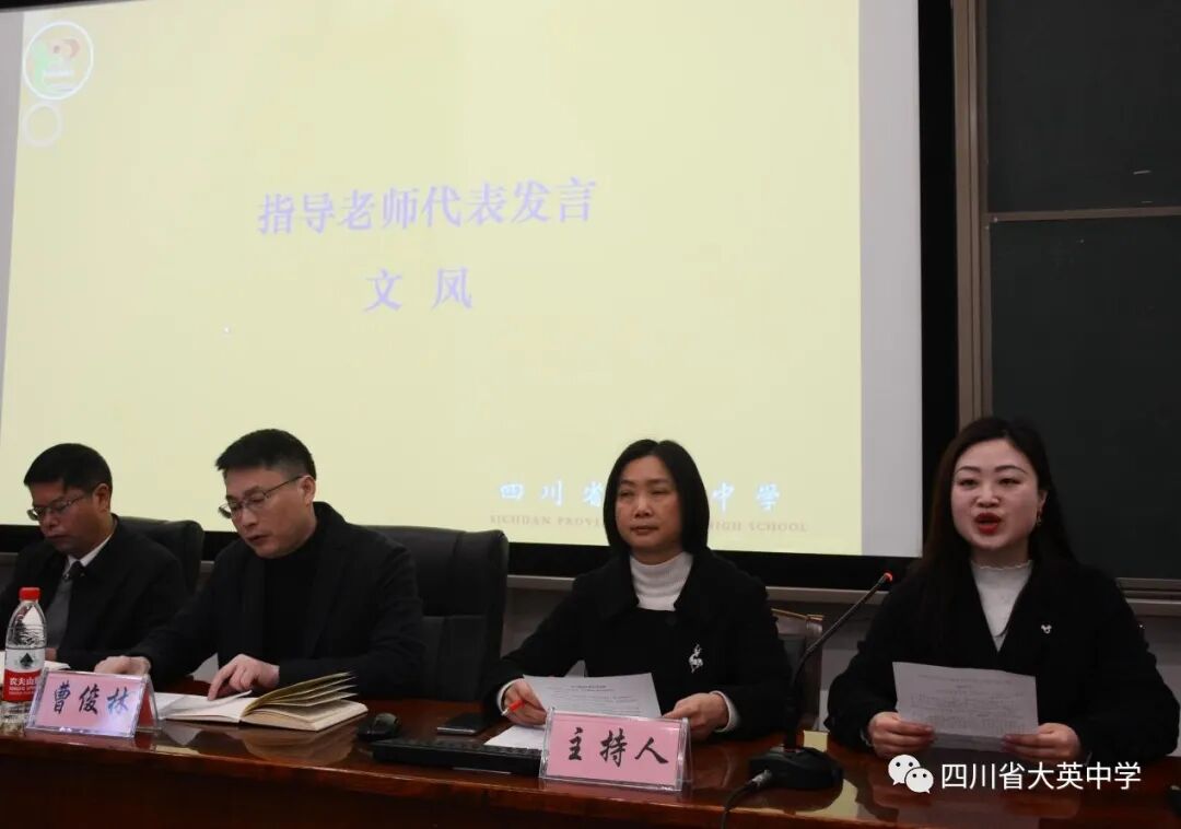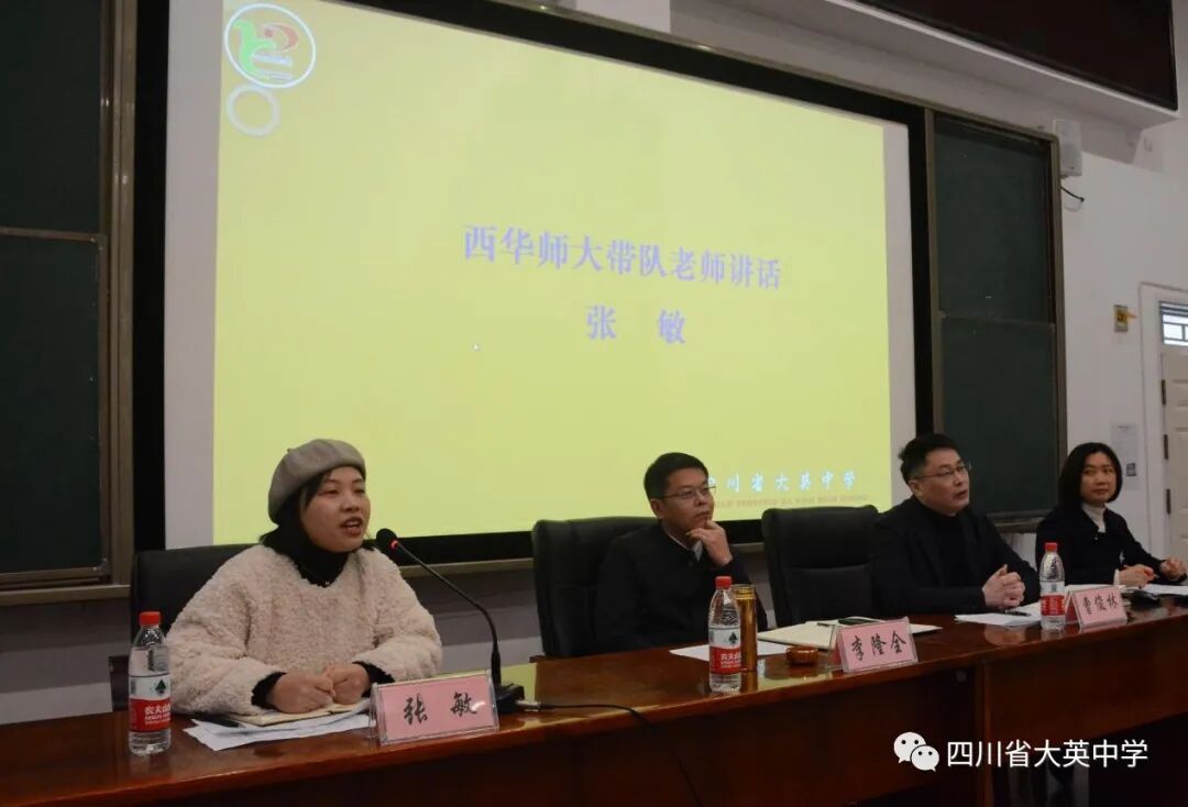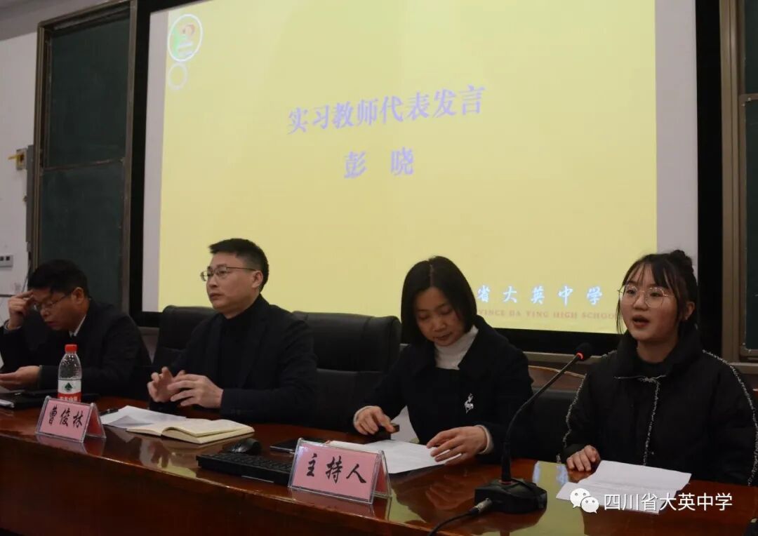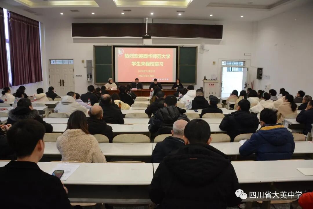 2月26日上午,陽光明媚,惠風(fēng)和暢。我校在高一階梯教室召開了西華師范大學(xué)實(shí)習(xí)生見面會。大英中學(xué)校長李隆全,大英中學(xué)黨委書記、副校長曹俊林,高一年級主管領(lǐng)導(dǎo)舒周主任,高二年級主管領(lǐng)導(dǎo)趙明主任,西華師大帶隊(duì)副教授、碩士生導(dǎo)師張敏,西華師大33名實(shí)習(xí)生以及我校的指導(dǎo)教師參加了會議。教科室副主任李雪蓮主持會議。大英中學(xué)黨委書記、副校長曹俊林致歡迎詞,他對西華師大實(shí)習(xí)生的到來表示熱烈的歡迎。接著教科室副主任李雪蓮宣布了指導(dǎo)教師名單,實(shí)習(xí)生代表彭曉和指導(dǎo)老師代表文鳳先后發(fā)言。