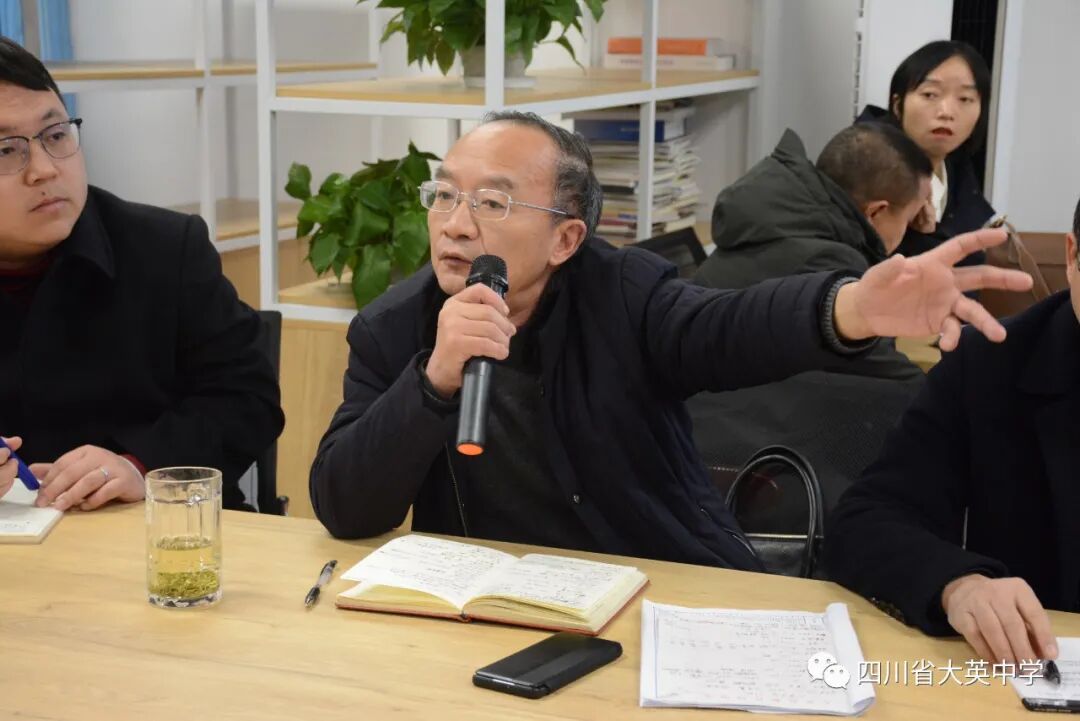 教體局教科所游仁林所長作專家點(diǎn)評。他指出:大英中學(xué)、育才中學(xué)高考備考各有所長,并對高校課堂、高校教研、踩線生突破、試題命制等提出了具體的意見和建議。