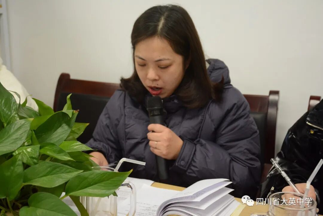 會議的第二項(xiàng)議程是由大英中學(xué)高三年級主任胡祚鑫作高三復(fù)習(xí)備考的專題匯報(bào)。胡主任從“一個現(xiàn)狀”,分析高三年級整體情況;“兩個方向”,明確高三年級奮斗方向;“三支團(tuán)隊(duì)”,建設(shè)激發(fā)管理效能;“四個高效”,建設(shè)提高教學(xué)效率;“五個抓手”,建設(shè)保障德育效果這五個方面詳細(xì)闡釋了大英中學(xué)高三年級的備考工作。