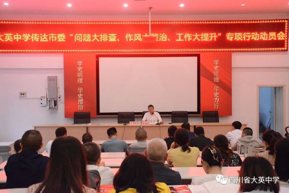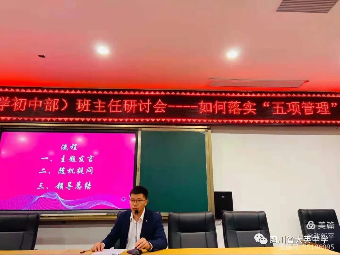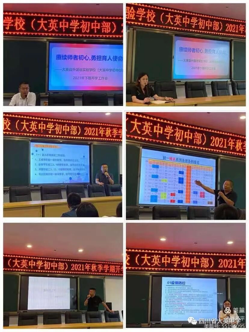 9月17日,召開新學期教學工作推進會,李隆全校長出席會議并講話,曹俊林書記宣講《四川省大英中學教學管理體系》,學校全體行政領導,教研組長、備課組長參加會議。