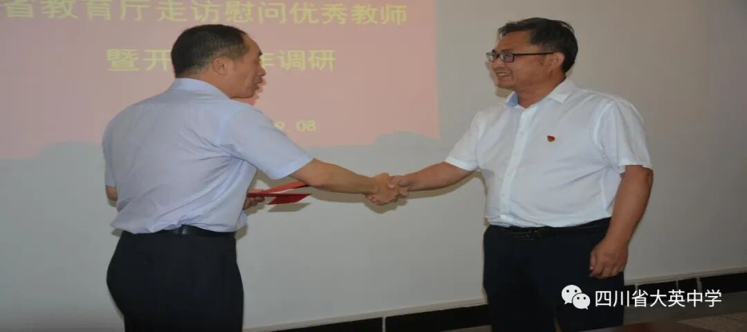 9月8日,張智勇副市長、周明副縣長等陪同省教廳督導組胡衛(wèi)鋒一行調(diào)研大英中學開學工作,同時慰問優(yōu)秀教師代表。