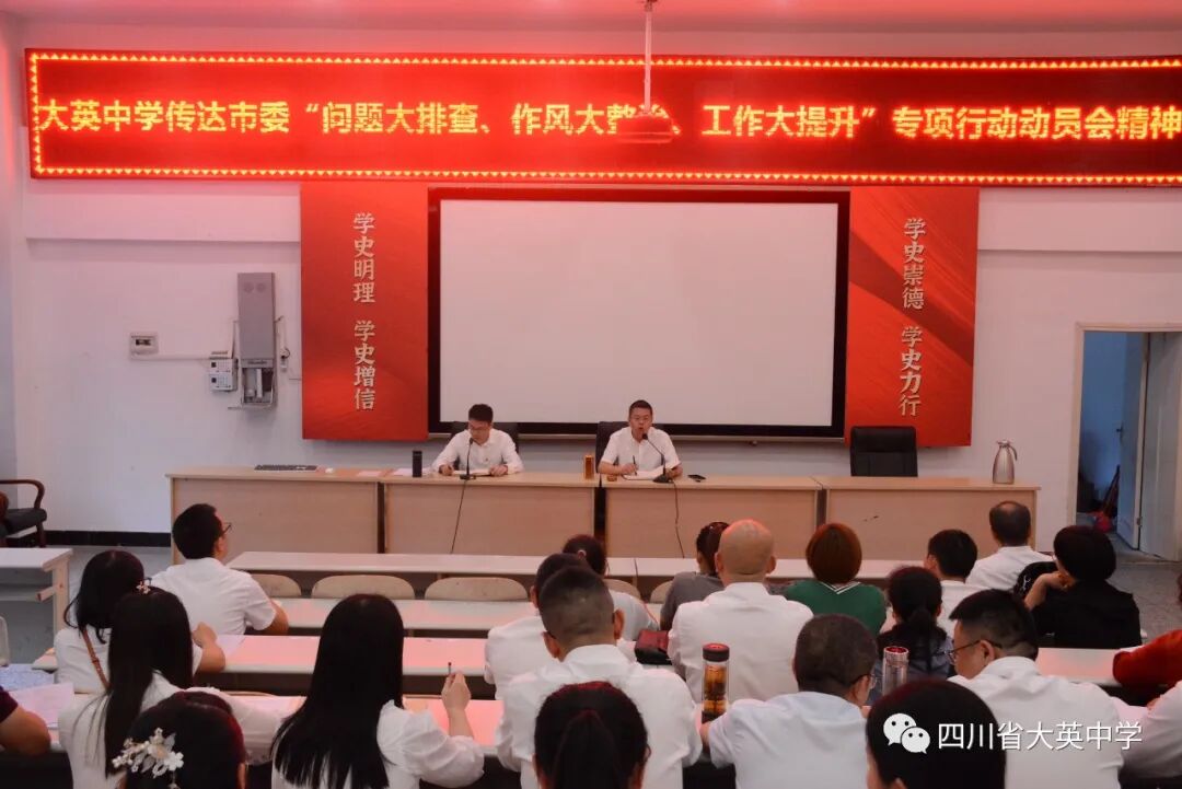 大英中學(xué)啟動(dòng)“問(wèn)題大排查、作風(fēng)大整治、工作大提升”專項(xiàng)行動(dòng)