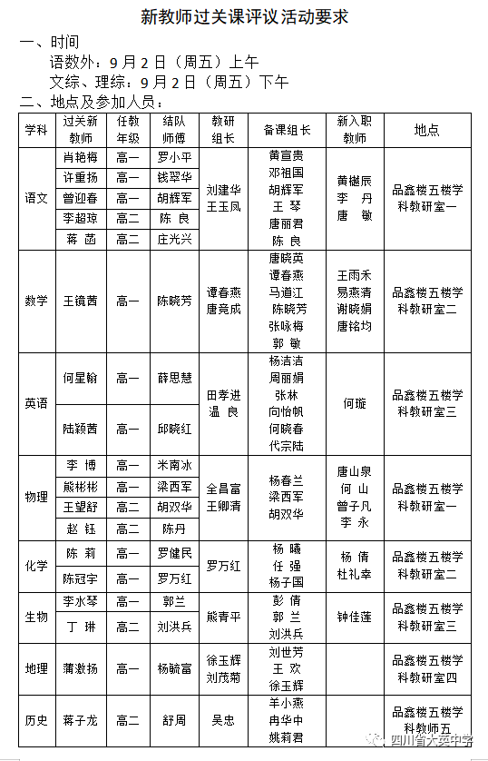我校語文組肖艷梅、許重?fù)P、曾迎春、李超瓊、蔣菡老師,數(shù)學(xué)組王鏡茜老師,英語組何星翰、陸穎茜老師,物理組李博、熊彬彬、王望舒、趙鈺老師,化學(xué)組陳莉、陳冠宇老師,生物組李水琴、丁琳老師,歷史組蔣子龍老師,地理組蒲激揚(yáng)老師全部過關(guān)!評(píng)議小組一致認(rèn)為他們的課堂教學(xué)完全符合我校高效課堂標(biāo)準(zhǔn),完全能夠勝任我校的教學(xué),予以全部過關(guān)!