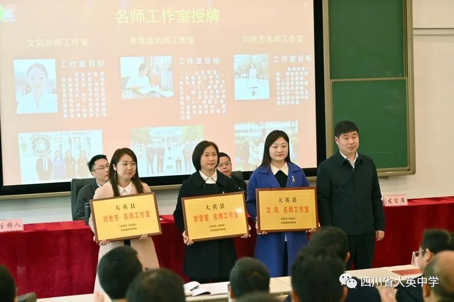 為進(jìn)一步探索“縣中提升”發(fā)展途徑,提升縣中教育教學(xué)質(zhì)量,2023年3月14日,四川省大英中學(xué)2023年上期教學(xué)工作推進(jìn)會(huì)暨四川省大英中學(xué)名師工作室授牌儀式在慧達(dá)樓階梯教室舉行。會(huì)議由教科室副主任李雪蓮主持,學(xué)校全體行政領(lǐng)導(dǎo)、教研組長、備課組長、名師工作室成員和“青藍(lán)工程”的相關(guān)教師參加。