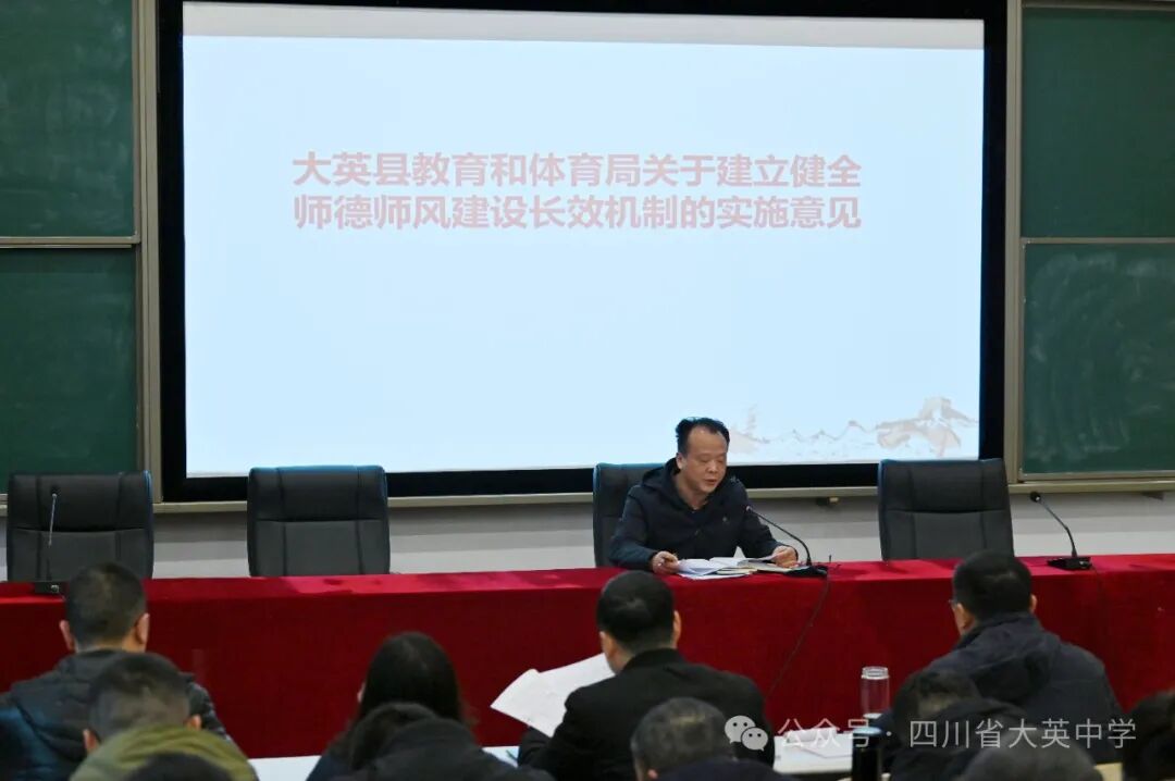 隨后,岳逆進(jìn)副書(shū)記組織學(xué)習(xí)《大英縣教育和體育局關(guān)于建立健全師德師風(fēng)建設(shè)長(zhǎng)效機(jī)制的實(shí)施意見(jiàn)》,分別從建立健全師德教育機(jī)制、建立健全師德宣傳激勵(lì)機(jī)制、建立健全師德失范督查機(jī)制、建立健全師德失范懲處機(jī)制、建立健全師德考核機(jī)制、建立健全師德建設(shè)保障機(jī)制三個(gè)方面對(duì)師德師風(fēng)工作開(kāi)展的要求進(jìn)行詳細(xì)闡述,并總結(jié)我校2023年師德師風(fēng)建設(shè)情況和師德師風(fēng)專項(xiàng)整治行動(dòng)情況,通報(bào)縣委巡察組反饋問(wèn)題。他強(qiáng)調(diào),抓好師德師風(fēng)工作,對(duì)鍛造高素質(zhì)教師隊(duì)伍,推動(dòng)教育高質(zhì)量發(fā)展具有重要意義。身負(fù)教書(shū)育人重任,我們要規(guī)范職業(yè)行為,弘揚(yáng)純正師德師風(fēng);以無(wú)私的奉獻(xiàn)精神,時(shí)刻把學(xué)生放在心里,把責(zé)任扛在肩上;用高尚的人格魅力,堅(jiān)守教育初心,堅(jiān)守教育凈土。