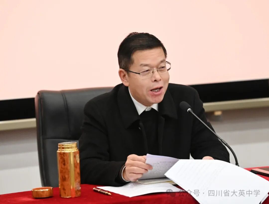 對(duì)于2023年的工作,李校長(zhǎng)從四個(gè)方面回顧總結(jié):一是高位求進(jìn)有成。2023年高考、中考成績(jī)優(yōu)異,再攀新高;學(xué)校先后被授予“全國(guó)國(guó)防教育示范學(xué)校”榮譽(yù)稱號(hào),被評(píng)為首批“四川省一級(jí)示范性普通高中(引領(lǐng)型)”,被遴選為四川省“大中小學(xué)思政課一體化共同體”成員,獲評(píng)“四川省首屆美麗校園”,同時(shí)獲得社會(huì)各界的一致好評(píng);成立名師工作室,外派教師跟崗學(xué)習(xí),啟動(dòng)教師學(xué)歷提升工程,進(jìn)一步加強(qiáng)教師隊(duì)伍建設(shè)。二是攻堅(jiān)克難有力。學(xué)校針對(duì)初中改制,找準(zhǔn)初高中銜接點(diǎn),新高考背景下的初高中一體化教育初見(jiàn)成效;家校協(xié)同育人,增強(qiáng)育人合力。三是夯基蓄勢(shì)有為。學(xué)校引進(jìn)大數(shù)據(jù)精準(zhǔn)分析,助力師生提質(zhì)增效。四是學(xué)校崛起有期。蓄力“縣中提升計(jì)劃”,錨定“三個(gè)為榮”教育強(qiáng)縣目標(biāo),奮力書(shū)寫(xiě)大英教育事業(yè)蓬勃發(fā)展的嶄新篇章。
