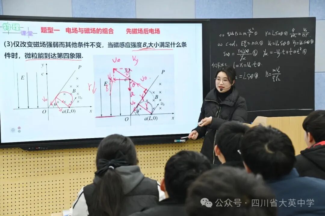大英中學(xué)陳丹老師課堂展示,《帶電粒子在疊加場和交變電磁場中運(yùn)動》。