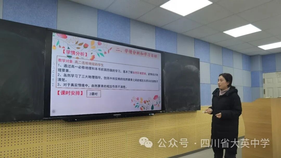 最后,蔡薇老師為本次活動做總結(jié)。她指出,本次大賽旨在促進教師之間、備課組之間的交流與合作,探索大單元理念下的課堂教學(xué)新模式。比賽中,老師們采用多種教學(xué)方法和手段,多角度創(chuàng)設(shè)情景,引導(dǎo)學(xué)生主動探究、合作學(xué)習(xí),培養(yǎng)了學(xué)生的地理思維和實踐能力。在以后的教學(xué)中,希望能夠進一步加強教學(xué)研究,推進教學(xué)改革,提升大英中學(xué)地理教學(xué)水平和教學(xué)質(zhì)量。
