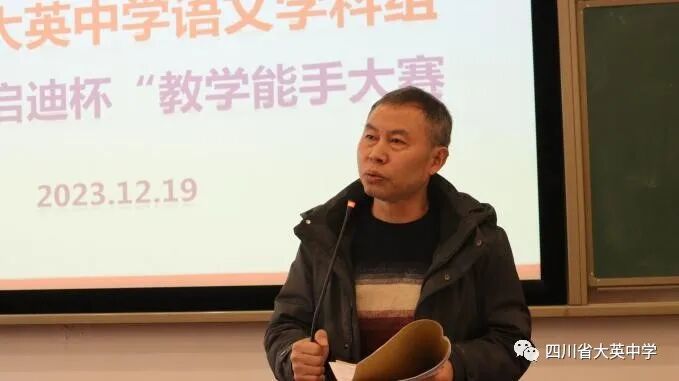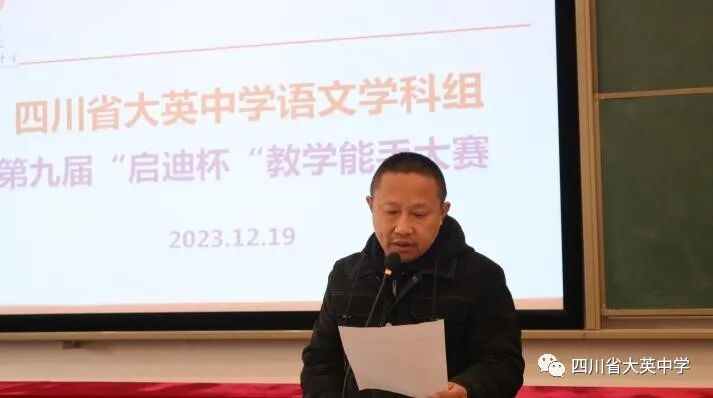 為深入推進(jìn)“四個(gè)高效”“三個(gè)設(shè)計(jì)”和實(shí)驗(yàn)課程建設(shè),加強(qiáng)“三新”背景下課程標(biāo)準(zhǔn)的研究,提高課堂教學(xué)效率,進(jìn)一步提升縣域高中學(xué)校教學(xué)質(zhì)量,四川省大英中學(xué)第九屆“啟迪杯”語(yǔ)文組教學(xué)能手大賽于2023年12月19日舉行。