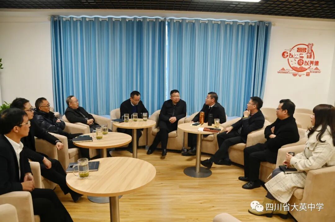 會后,大英中學(xué)與會領(lǐng)導(dǎo)和榮縣來賓在書吧座談交流,就當(dāng)前共同面臨的“三新”背景下的高中教學(xué)、管理現(xiàn)狀與前景進(jìn)行探討,彼此借鑒,互相學(xué)習(xí)。