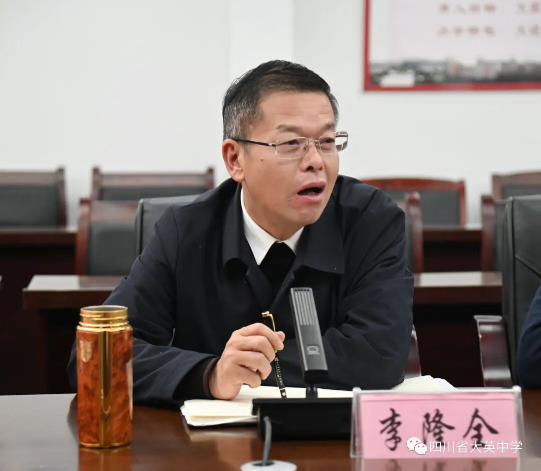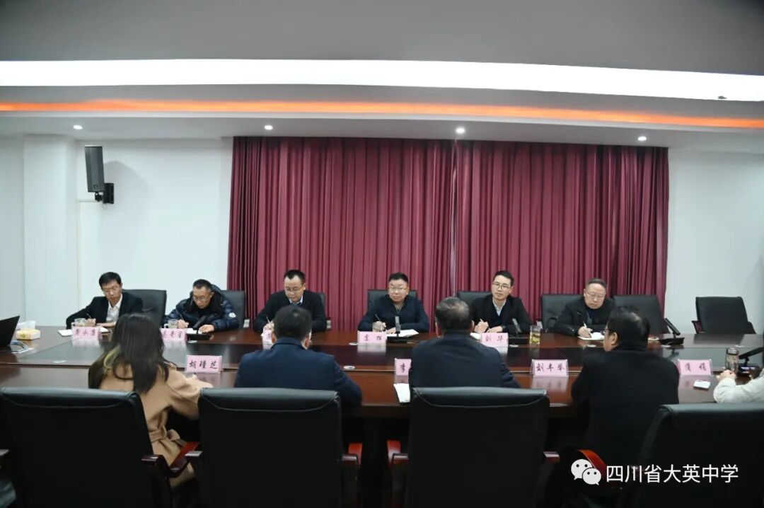 2023年11月21日下午,榮縣教體局副局長虞輝和榮縣中學(xué)龔秦春校長領(lǐng)導(dǎo)一行六人蒞臨大英中學(xué)考察交流,我校李隆全校長、曹俊林書記和教學(xué)管理團(tuán)隊代表參與會議,雙方圍繞“三新”背景下我校創(chuàng)新教學(xué)管理及拔尖人才培養(yǎng)模式進(jìn)行深度交流,就如何提升高中教學(xué)質(zhì)量和管理水平進(jìn)行探討。