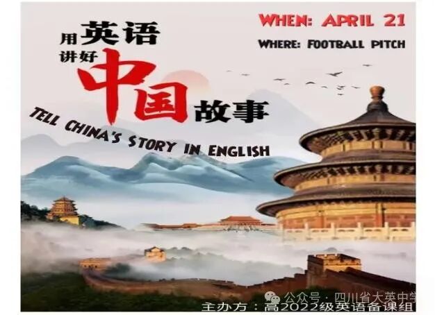 新時(shí)代催人奮進(jìn),新征程令人振奮。在中國(guó)特色社會(huì)主義新時(shí)代背景下,為了增強(qiáng)學(xué)生的民族自豪感,提升用英語(yǔ)傳播中華文化的能力,同時(shí)順應(yīng)英語(yǔ)新課標(biāo)“將中華文化融入英語(yǔ)教學(xué),讓學(xué)生在學(xué)習(xí)語(yǔ)言和西方各國(guó)文化的同時(shí),守好祖國(guó)的文化之根,樹(shù)立文化自信”的要求,高2022級(jí)英語(yǔ)備課組精心策劃、組織以“用英語(yǔ)展示中華文化,在故事里讀懂中國(guó)”為宗旨的愛(ài)國(guó)主義主題演講比賽。