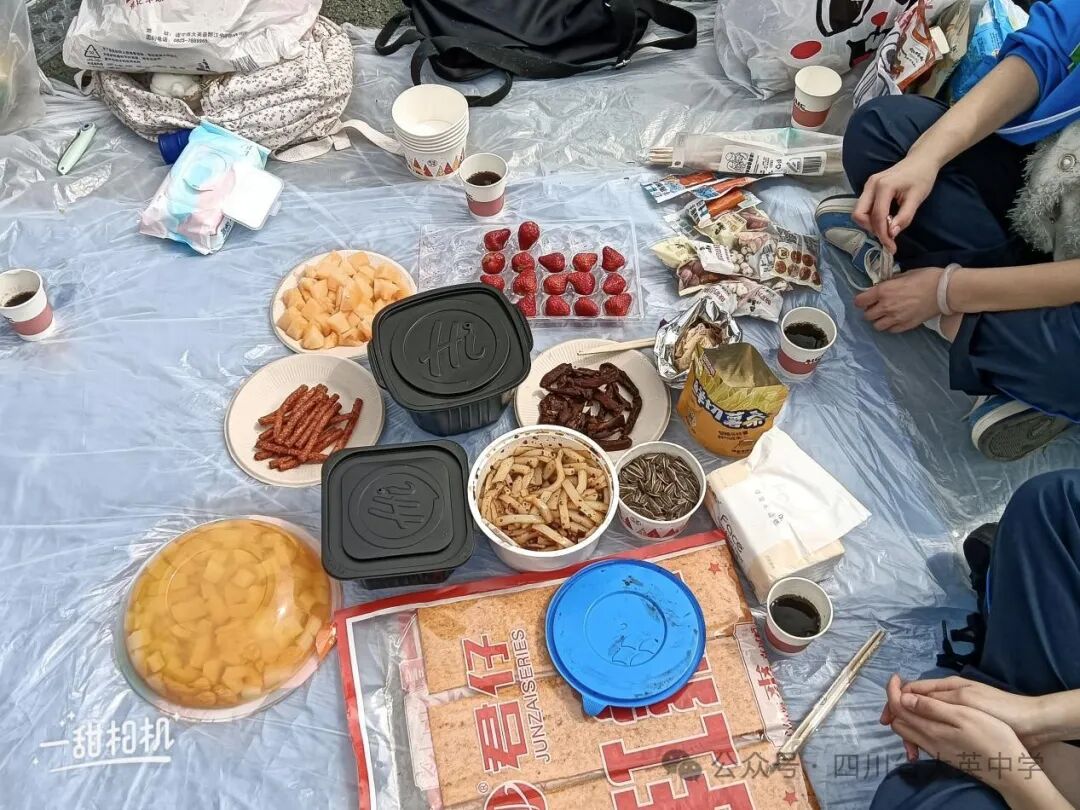 三小時徒步后,各年級分赴營地開啟春日野餐。同學(xué)們化身"廚藝達(dá)人",自制菜品、創(chuàng)意糕點與繽紛水果擺滿餐墊,各組比拼"美食美學(xué)",歡聲笑語回蕩在金黃的油菜花叢中。餐后的互動游戲更顯青春活力,春光、美食與協(xié)作,構(gòu)成了一幅生動的成長畫卷。
