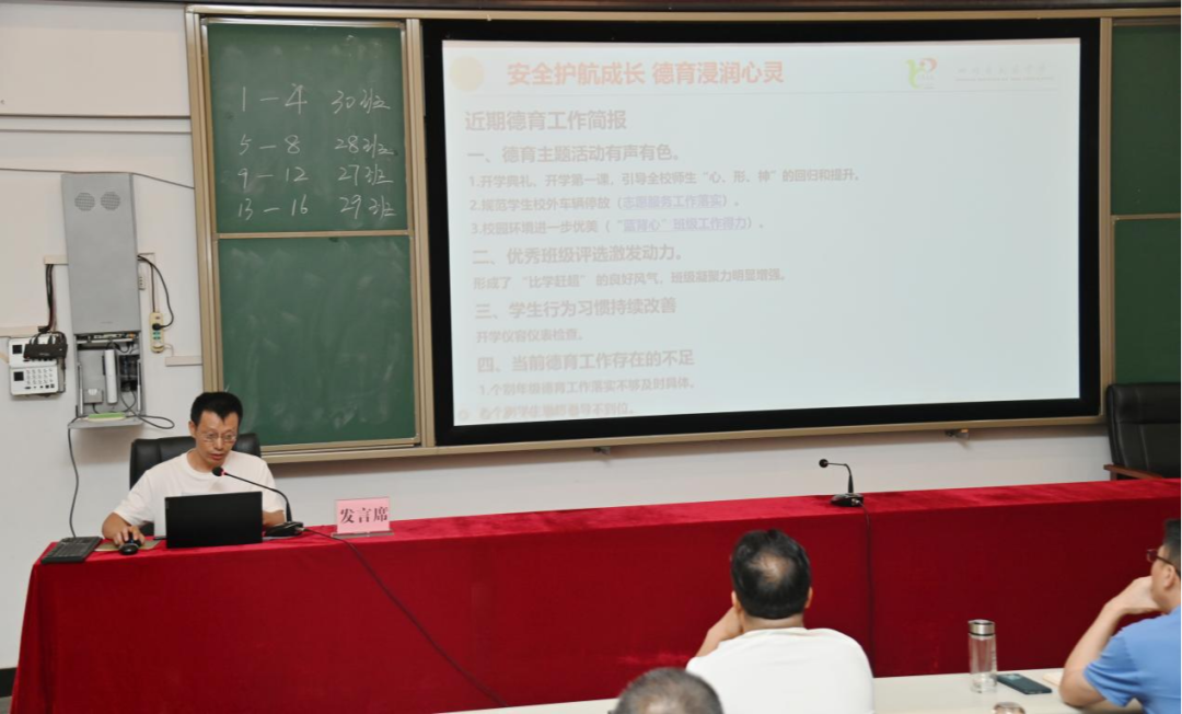 為切實提升班主任的安全管理能力與德育工作實效,增強立德樹人的責(zé)任感與使命感,9月15日下午,大英中學(xué)在慧達(dá)樓二樓階梯教室召開2025年秋季學(xué)期德育工作暨開學(xué)安全工作會。全體班主任,各年級分管領(lǐng)導(dǎo)、政教主任及政工員、團(tuán)委(副)書記參加會議,政教處辦公室主任李濤主持會議。