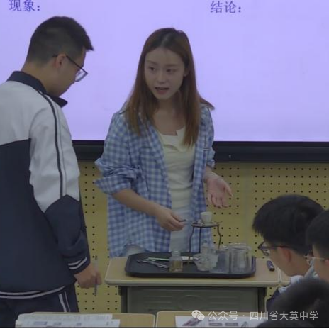 田雨鑫老師結(jié)合教師演示與學生小組合作模式,作實驗新授課型示范。